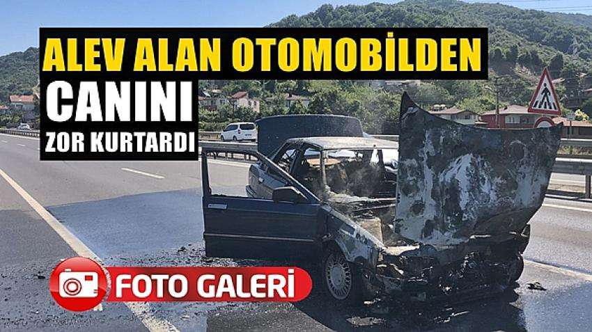 Zonguldak'ın Alaplı ilçesinde önünde seyreden aracın ani fren yapması sonrası arkasından seyreden araç hızını alamayınca kaza yaşandı. Kazada araç alev aldı. Sürücü son anda araçtan inerek yara olaydan yara almadan kurtuldu.