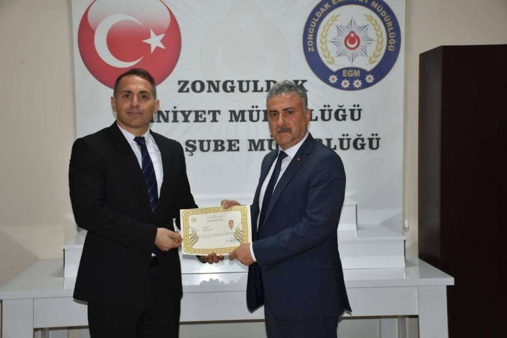 Zonguldak İl Emniyet Müdürü Fahri Aktaş, son dönemlerde başarılı operasyonlara imza atan 16 Asayiş şube müdürlüğü personeline takdir belgesi verildi.