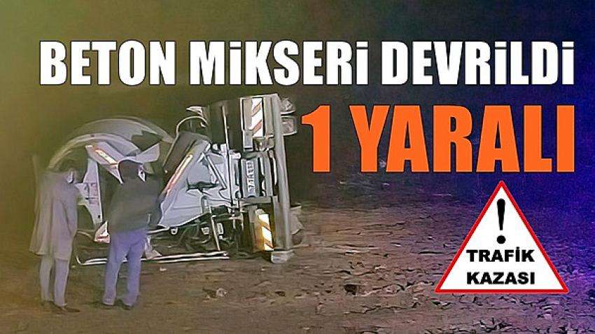 Beton mikseri devrildi: 1 yaralı.