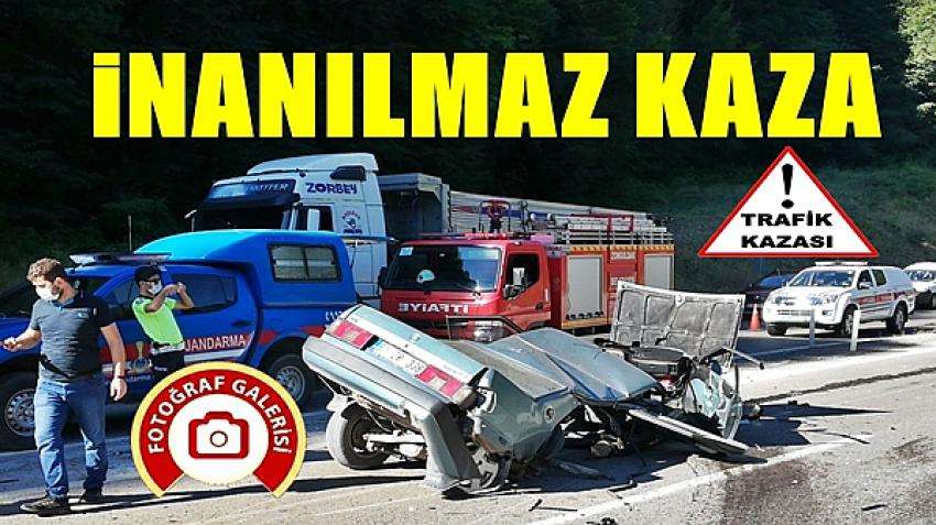 Zonguldak Ankara karayolunda meydana gelen feci kaza kazada 2’si çocuk 4 kişi yaralandı. Kaza sonrası ikiye ayrılan araç hurdaya dönerken, can kaybı olmadı.