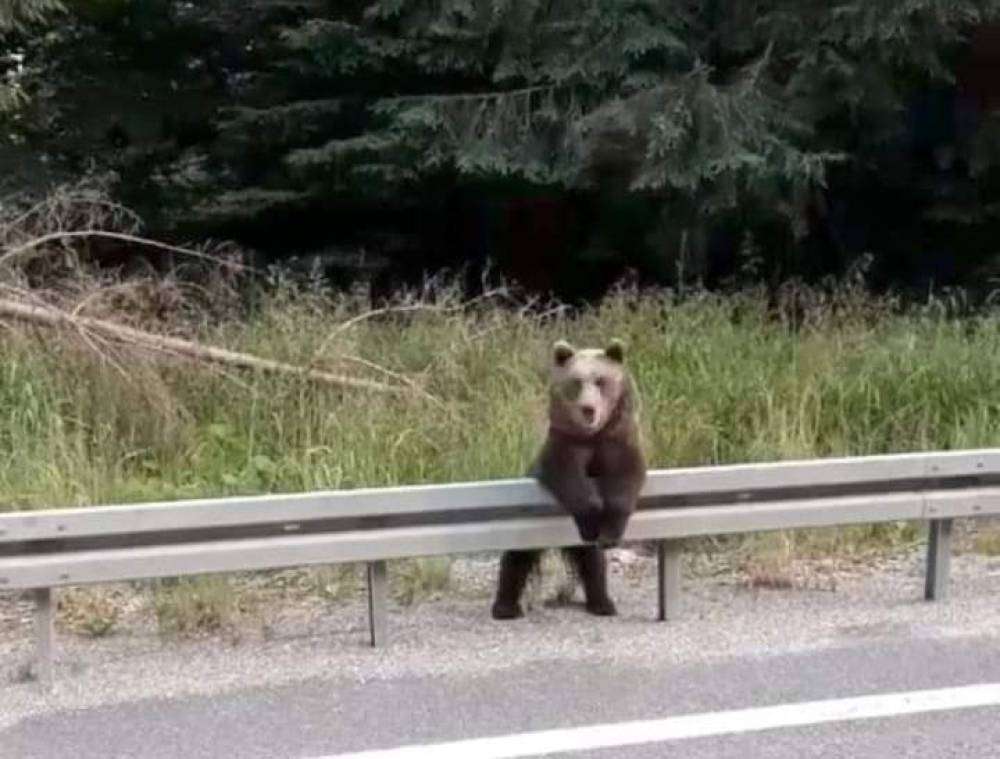 Zonguldak-Ereğli Karayolu üzerinde görülen boz ayı fotoğrafının çekildiğini anlayınca, adeta poz verdi.