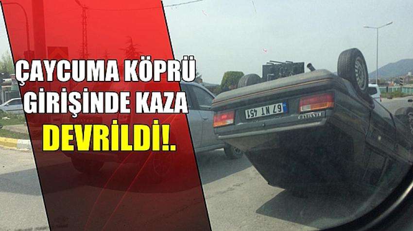 Zonguldak-Bartın karayolunun Çaycuma ilçe girişinde bulunan köprünün trafik ışıklarında meydana gelen kazada bir otomobil takla atarak kazaya neden oldu.