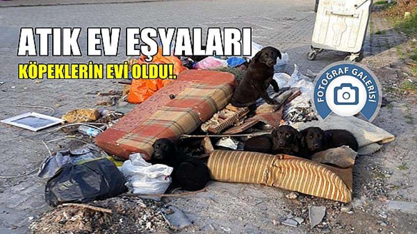 Çaycuma'da vatandaşlar tarafından kullanılmayan ve çöpe atılan ev eşyaları çevrede kirliliğe yol açarken, orada bulunan ve sokaklarda yaşayan köpekler ise atılan eşyaların üzerlerinde konaklamaya başladı.