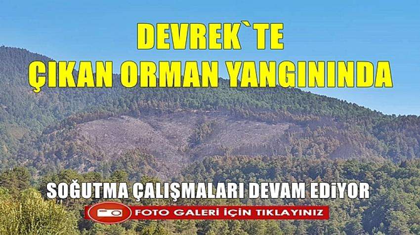 Zonguldak'ın Devrek ilçesinde ormanlık alanda dün öğlen saatlerinde çıkan yangında soğutma çalışmaları devam ediyor.