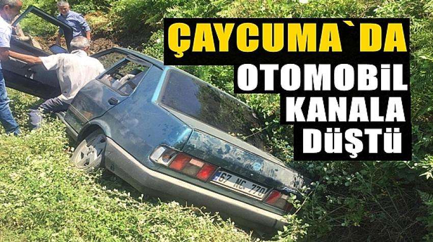 Zonguldak'ın Çaycuma ilçesinde sürücüsünün hakimiyetini kaybettiği otomobil, bir metrelik yükseklikten kanala düştü.