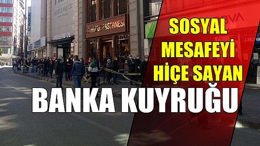 Zonguldak'ta vatandaşlar bankalarda işlem yapabilmek için sosyal mesafeyi hiçe sayarak metrelerce kuyruk oluşturdu.