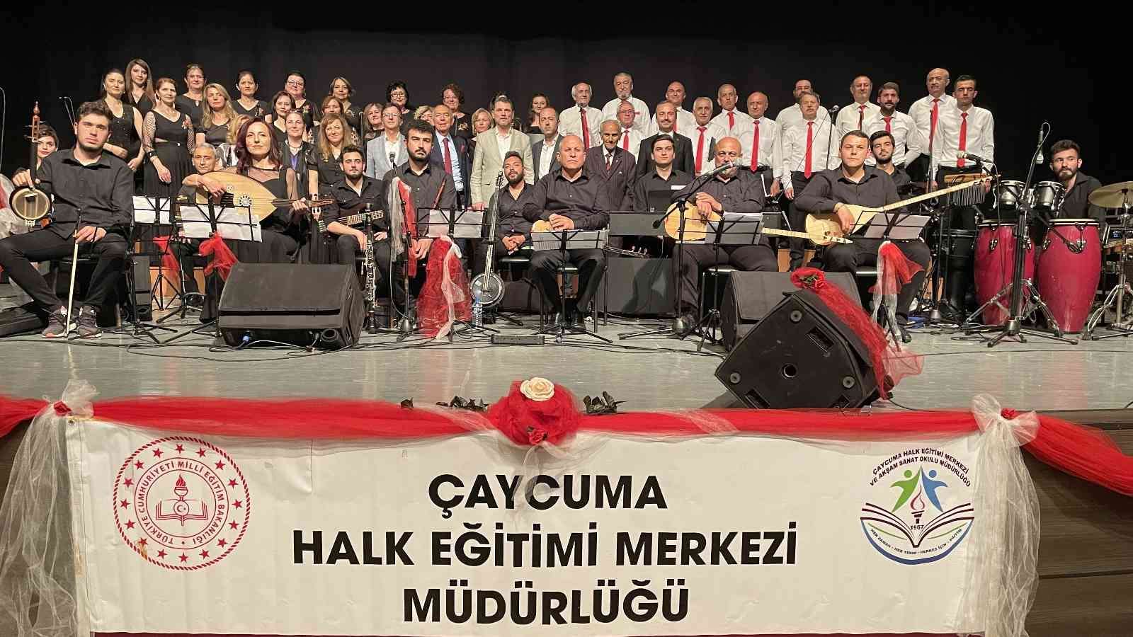 Zonguldak’ın Çaycuma ilçesinde ’Hayat Boyu Öğrenme Haftası’nda Halk Eğitim Merkezi ‘Türk Halk Müziği’ konseri düzenlendi.?Milli Eğitim Bakanlığı tarafından ilan edilen ve 1-7 Haziran tarihleri arasından kutlanan ’Hayat Boyu Öğrenme Haftası’ nedeniyle Çaycuma Halk Eğitim Merkezi Türk Halk Müziği Konseri müzikseverlere keyifli bir akşam yaşattı.Çaycuma Kültür Merkezi’nde gerçekleşen programa; İlçe Milli Eğitim Müdürü İsmail Baş, İlçe Halk Eğitim Merkezi Müdürü Gökhan İncircioğlu ve Müdür Yardımcıları Ramazan Kavas, Serpil Yıldırım, AK Parti İlçe Başkanı Birol Yiğit, sivil toplum kuruluşu temsilcileri, müzikseverler katıldı.Saygı duruşu ve İstiklal Marşı’nın okunmasının ardından açılış konuşması yapan Halk Eğitim Merkezi Müdürü Gökhan İncircioğlu; “2021-2022 Eğitim-Öğretim yılı Hayat Boyu Öğrenme Haftası etkinlikleriyle kursiyerlerimizin bir sene boyunca yapmış oldukları el emeği ürünlerden oluşan sergi ve konserimize hoşgeldiniz. Halk Eğitim Merkezlerinde, bir becerisini değerlendirmek, hobi olarak başladığı bir etkinliği geliştirmek, meslek edinmek, aklınıza gelebilecek her konuda açılan kurslarımızla hangi yaşta olursa olsun, vatandaşlarımızın tamamen ücretsiz ve ciddi bir eğitim imkanı sunulmaktadır. İlçemizin merkezinde, beldelerinde ve köylerimizin çoğunda meslek edindirme kursları gerekse sosyal kültürel alandaki kurslarımızla vatandaşlarımızı buluşturduk. Açılan sosyal ve kültürel alandaki kurslar ile yetişkinler ve çocuklarımız spor yaptılar, bir enstrüman ile tanıştılar, dil öğrendiler, resim yaptılar, çeşitli becerilerini geliştirerek, kendilerini ifade etme şansı buldular. Bu sene içerisinde kursiyerlerimizin yaptıkları ürünler Bakanlığımız ve Genel Müdürlüğümüzce takdir edilmiş, 24 Kasım Öğretmenler Gününde Bakanlığımız tarafından düzenlenen gecede ülkemizin 81 ilinden gelen öğretmenlere Cumhurbaşkanımız ve Bakanımız tarafından takdim edilen hediyelere kurumumuz tarafından yapılmış olup, bu durum kurumumuza büyük bir onur ve gurur kaynağı olmuştur. Hayat Boyu Öğrenme Müdürlüğümüzün ‘Hayata mutlu bireyler hazırlamak, her zaman, her yerde, herkes için eğitim’ vizyonunu gerçekleştirmek amacıyla elimizden gelen herşeyi yapıyor. Bizden bu konuda desteklerini esirgemeyen Kaymakamımız Muharrem Coşgun’a, İlçe Milli Eğitim Müdürü İsmail Baş’a teşekkür ediyorum” dedi.Kurum Müdürü İncircioğlu’nun konuşmasının ardından birbirinden eşsiz şarkılar koro şefi Mustafa Kömürcü yönetiminde Türk Halk Müziği korosu tarafından seslendirildi. Konser sonunda İlçe Milli Eğitim Müdürü İsmail Baş teşekkür konuşması yaparak Koro Şefi Mustafa Kömürcü’ye çiçek takdim etti.
