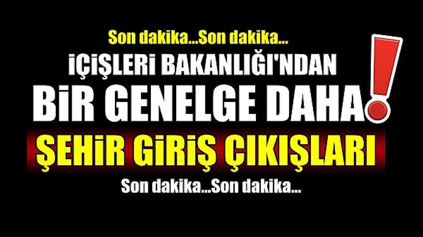 İçişleri Bakanlığı, 81 il valiliğine "Şehir Giriş/Çıkış Seyahat Kısıtlaması" konulu genelge gönderdi.