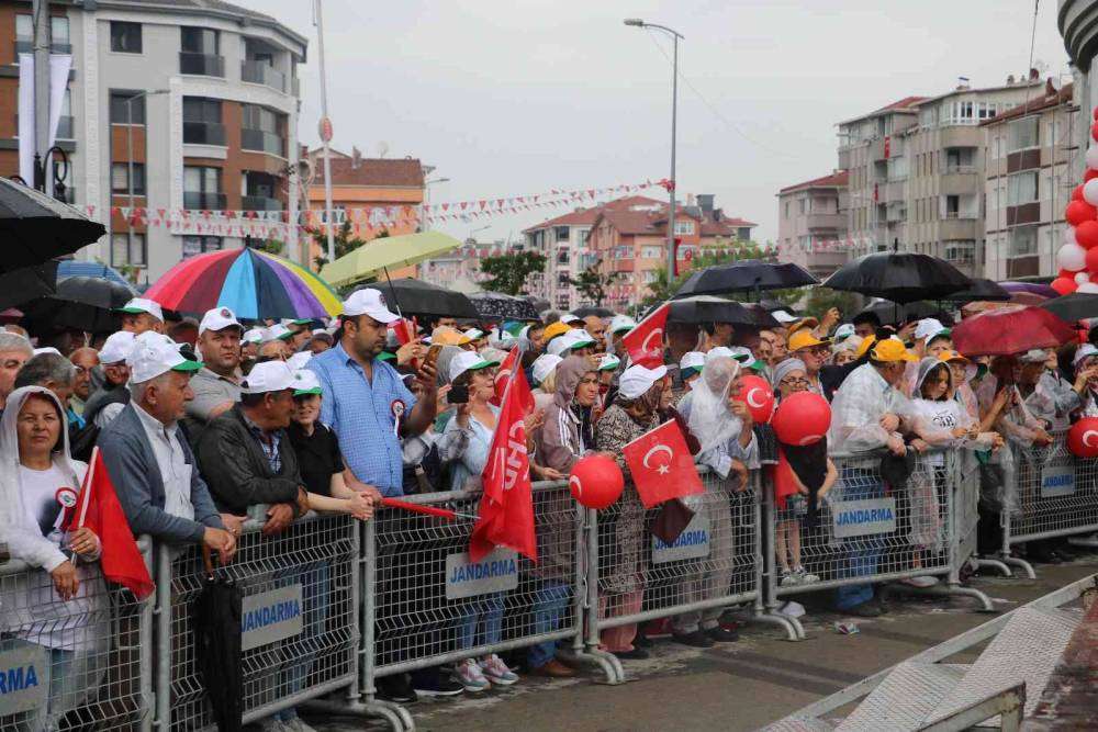 “Türkiye’yi yöneteceğiz. Millet İttifakı Türkiye’yi yöneteceğiz. Herkesi kucaklayarak yöneteceğiz. Halktan topladığımız verginin yani her kuruşun hesabını vereceğiz. Halkımızla helalleşeceğiz. Ama beşli çetelerle hesaplaşacağız. Yolsuzluk yapan kul hakkını yiyenin hesabını soracağız. O nedenle biz halkımızı seviyoruz. Aynı havayı teneffüs ediyoruz. Birlikte bu ülkede huzur içerisinde yaşayacağız. Çaycuma bunun en güzel örneği. Türkiye ve bütün dünya bilsin. Böyle yöneteceğiz ve yönetmeye devam edeceğiz. Sıkıntılarımız var. Mutfaklarda yangın var. Bunu da çok iyi biliyorum. Gencecik evlatlarımız işsiz. Beşli çetelere çalışan bir iktidar var. Onu da çok iyi biliyorum. Bütün bunların hepsini çok iyi biliyorum. Sizden tek istediğim asla ve asla umutsuzluğa kapılmayın. Umudu büyüteceğiz. Beraber birlikte Türkiye’yi yeniden inşa edeceğiz. Bundan emin olmanızı istiyorum. Devletin temeli adalettir. Devlet adaletle yönetilir. Devlet liyakatle yönetilir. Devleti adaletle yönetmezseniz, belediyeyi liyakatle yönetmezseniz kaynakları israf edersiniz. Liyakat denen şey çok önemlidir. Belediye başkanımız kimseye el avuç açmadan Çaycuma’yı herkesin imreneceği Çaycuma haline getirdi. Kendi imkanlarıyla getirdi. Harcadığı her kuruşun hesabını da Çaycumalılara verdi. Sizler onu seçtiniz. O da bunun hesabını sizlere veriyor. Yağmur yağıyor, bereket geldi. Her yer bereketli olsun. Biz bereketten yanayız. Sevgiden yanayız. Kucaklaşmaktan yanayız. Bu güzel ülkeyi birlikte yöneteceğiz. Sandık gelecek büyük bir sabırla sandığa gideceğiz. Oylumuzu kullanırken elimizi vicdanımıza koyarak oyumuzu kullanacağız. Hiç kimse endişe etmesin. Geliyor gelmekte olan.”