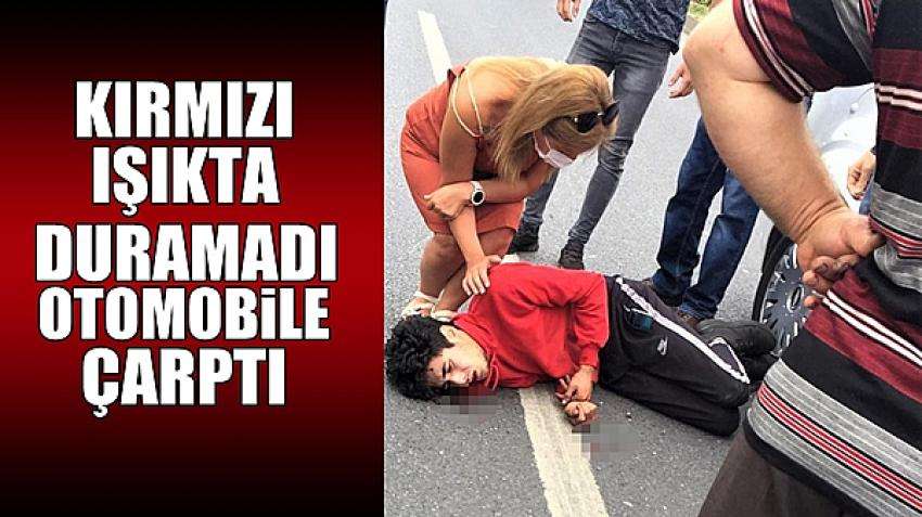 Kırmızı ışıkta duramadı, otomobile çarptı