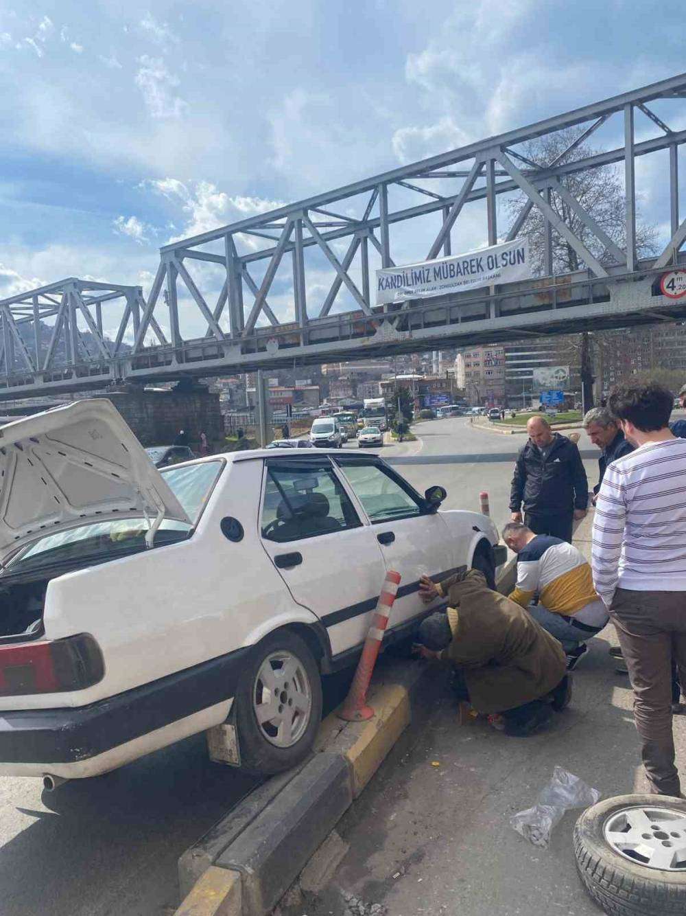 Zongulda’ta sürücüsünün kontrolünden çıkan otomobil refüje çıktı.