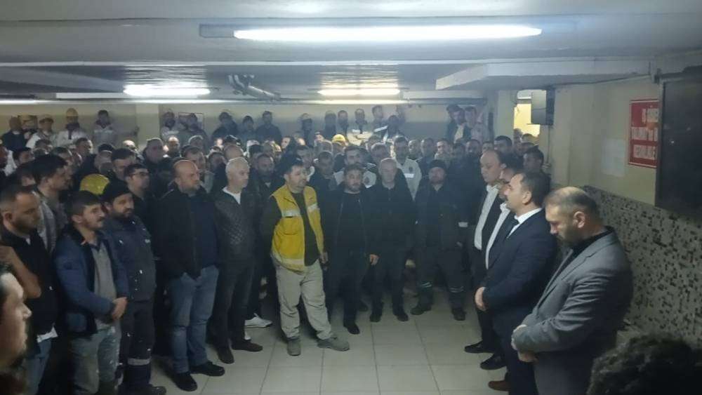TTK Kozlu Müessese Müdürlüğü’nde çalışan maden işçileri, 9 Aralık 2022 tarihinde sabah vardiyası öncesi ocak önünde toplantı. Genel Maden İşçileri Sendikası Kozlu Şubesi Başkanı Dursun Başbakacı ve Kozlu Amelebirliği Yönetim Kurulu Üyesi Yener Aslanboğa işçilere konuşma yaptı. Maden işçileri öncelikle Bartın’daki faciada şehit olan 42 madenci arkadaşları ve tüm maden şehitleri için bir dakikalık saygı duruşunda bulundu.
