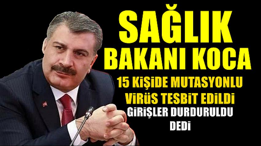 Sağlık,Bakanı,Koca 15 kişide mutasyonlu virüs tesbit edildi girişlerler durduruldu dedi.