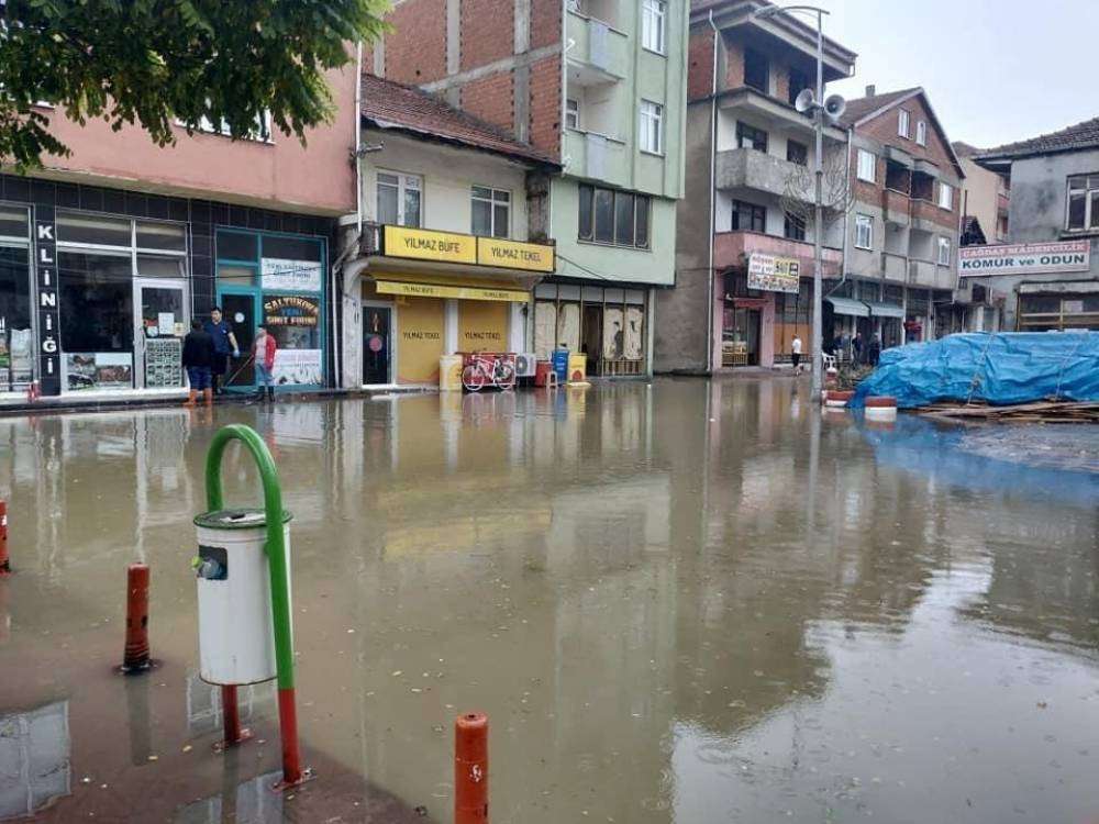 Yoğun yağış sonrası yükselen sel suları belde esnafı ve vatandaşlara zor anlar yaşadı. Beldenin merkezi ve köy yolları adeta dere yatağına dönüştü.