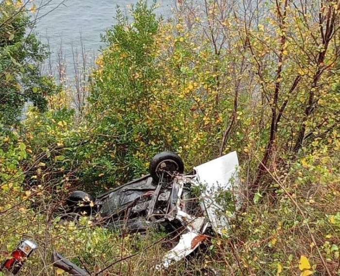Uçuruma uçan otomobili ağaç dalları kurtardı