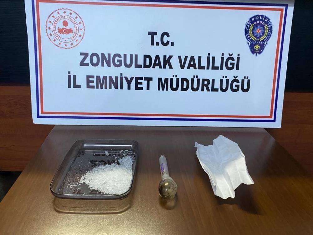 Zonguldak İl Emniyet Müdürlüğüne bağlı ekipler Devrek ilçesinde uyuşturucu ile mücadele doğrultusunda düzenledikleri operasyonda E.Ö. isimli şüpheliyi yakaladı. Şahsın üzerinde yapılan aramada öldürücü etkiye sahip 15 gram uyuşturucu madde, hap ve aparat ele geçirildi.