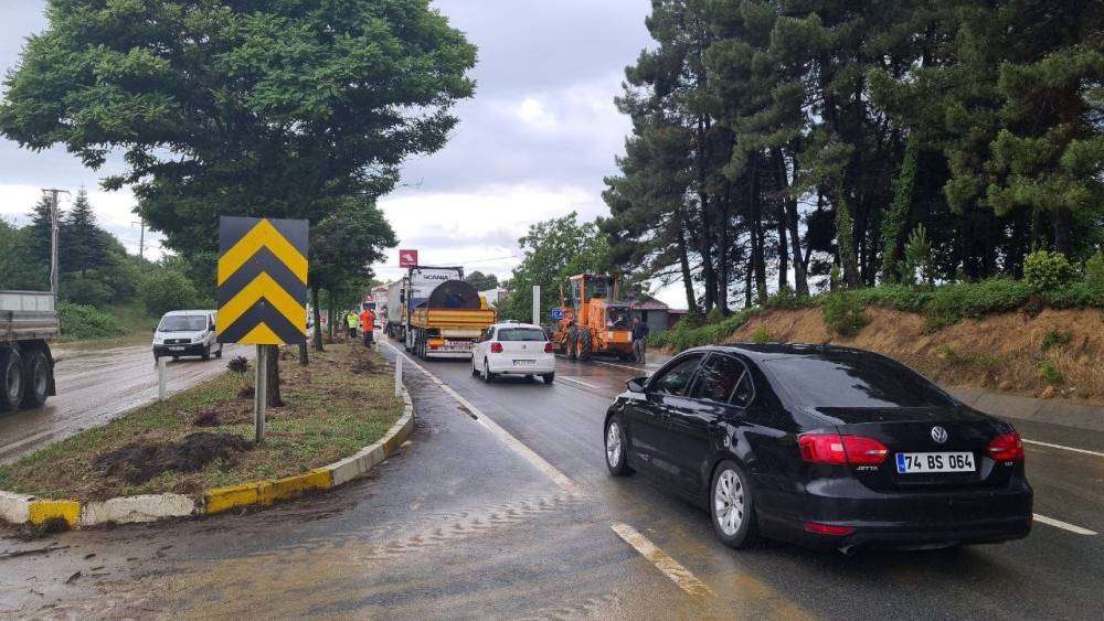 Zonguldak-Düzce yolu sel nedeniyle trafiğe kapandı