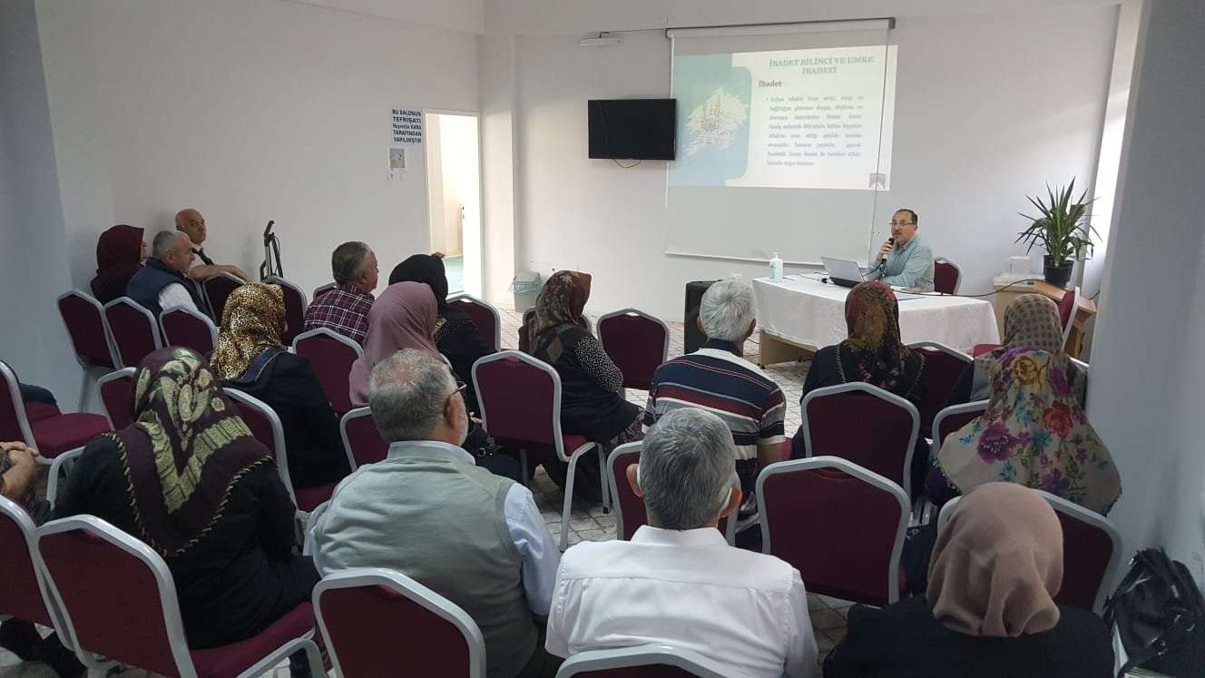 Zonguldak’ın Alaplı ilçesinde kutsal topraklara gidecek olan 19 hacı adayına 2 gün boyunca eğitim verildi.Zonguldak’ın Alaplı ilçesinde çekilen kuralar sonrasında kutsal topraklara gidecek olan 19 hacı adayı belirlendi. Haydar Çaturoğlu Hafızlık Erkek Kur’an Kursu Konferans Salonunda düzenlenen seminerlerde hacı adaylarının, hac ibadetini eksiksiz bir şekilde yerine getirmeleri için sunumlar yapıldı. Diyanet İşleri Başkanlığı 2022 Hac Organizasyonunda Medine Bölgesi Ekip Başkan Yardımcısı olarak görevlendirilen Alaplı İlçe Müftüsü Aydın Bostancı yaptığı açıklamada,