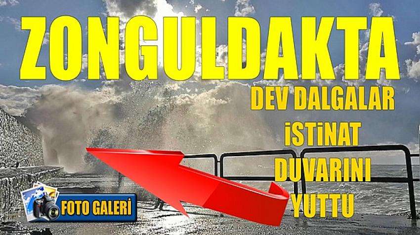 Zonguldak`ta dev dalgalar istinat duvarını yuttu.