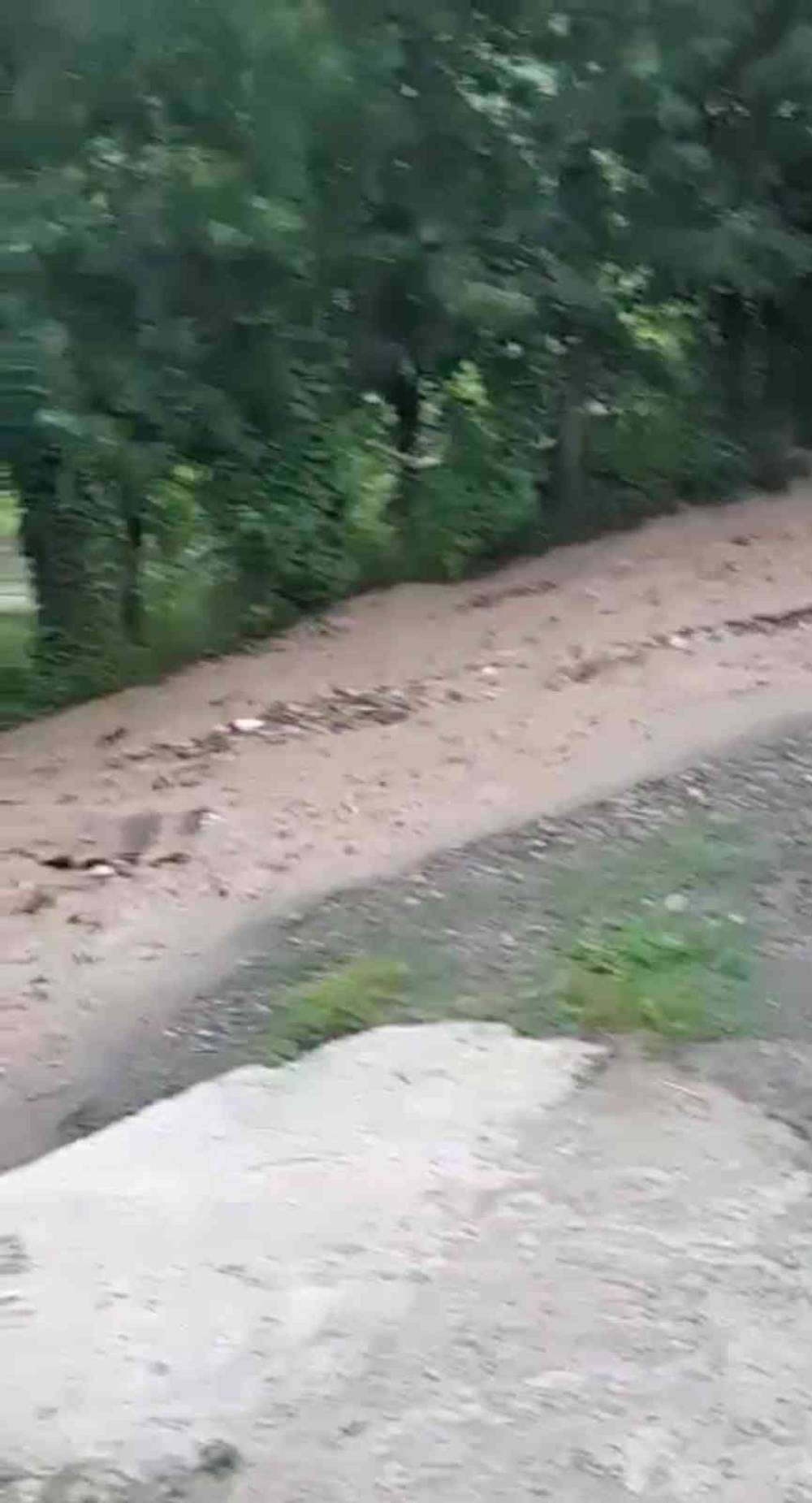 Zonguldak’ın Çaycuma ilçesine bağlı Perşembe ilçesi Dursunlar köyünde etkili olan kuvvetli sağanakla birlikte yol adeta nehre dönüştü. Sularla birlikte taş parçaları da yolda sürüklendi. Sular bir süre sonra çekilirken, köydeki ulaşımı etkileyen yağmur bir vatandaşın cep telefonu kamerasına yansıdı.