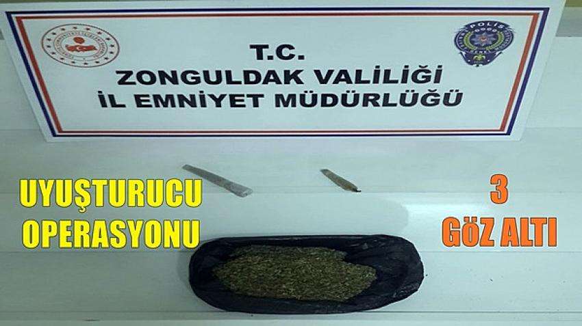 Zonguldak İl Emniyet Müdürlüğü Narkotik Suçlarla Mücadele Şube Müdürlüğü tarafından yapılan operasyonda, 3 kişi gözaltına alındı.